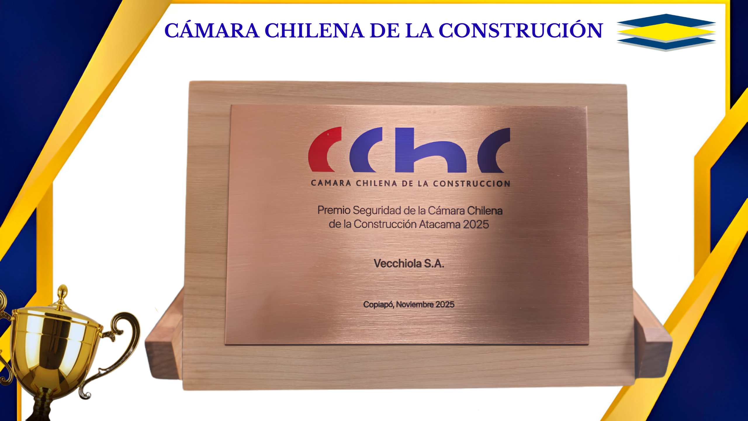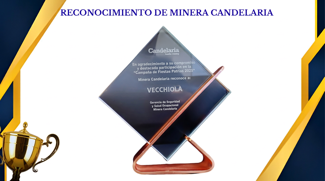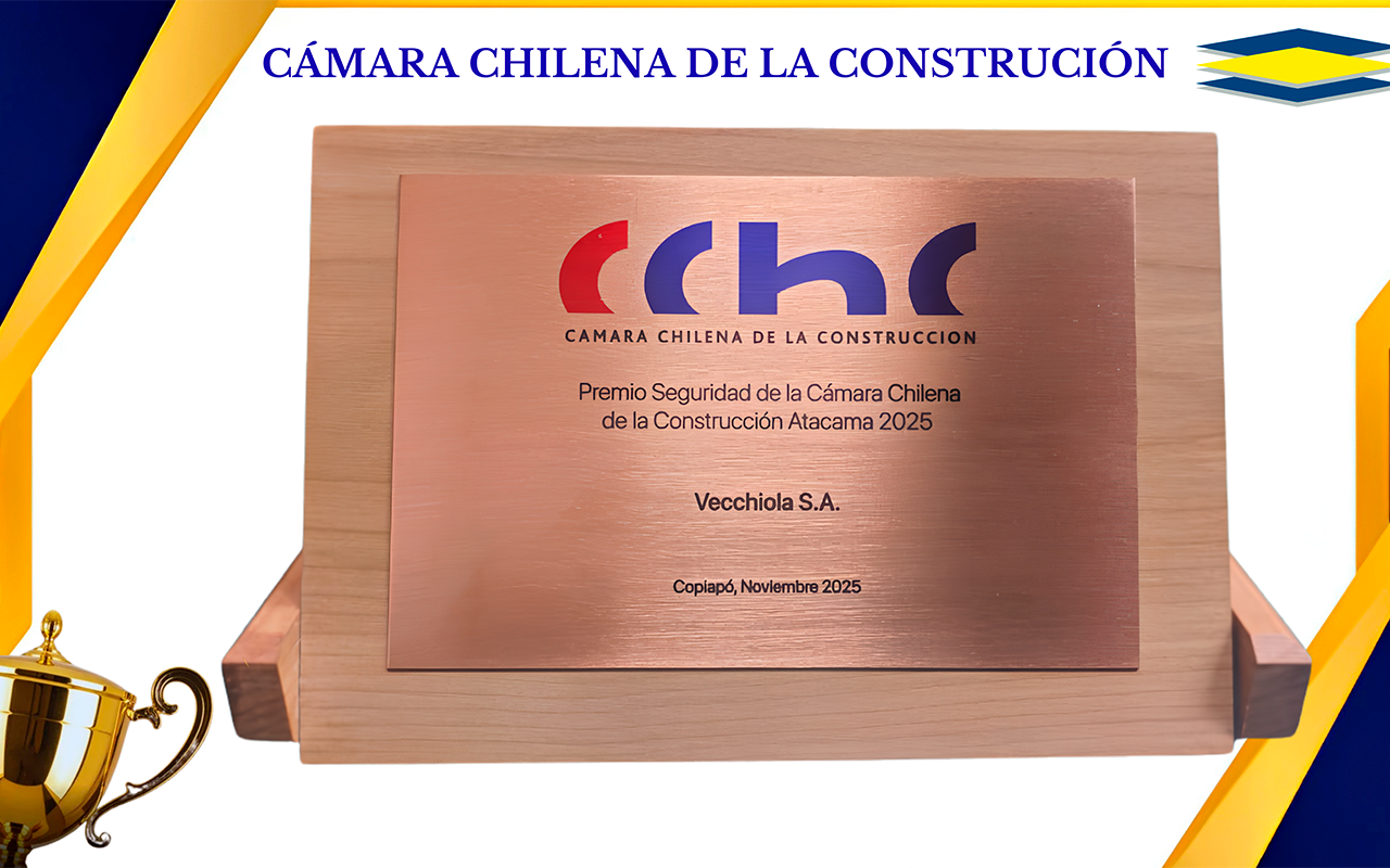 Nos enorgullece anunciar que Vecchiola S.A. ha sido distinguida con el Premio de Seguridad, reconocimiento que destaca nuestro compromiso permanente con la seguridad y el bienestar de nuestros colaboradores.
